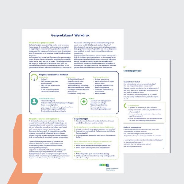 Ervaar je een (te) hoge werkdruk? Maak dan gebruik van de gesprekskaart ‘Werkdruk’ en krijg op deze manier inzicht in mogelijke oorzaken en oplossingen.