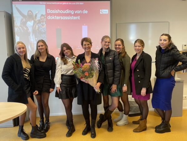 Hier gaf zij voor eerstejaars studenten een leuke interactieve gastles over de benodigde competenties van een doktersassistent vanuit het Beroepscompetentieprofiel (BCP).