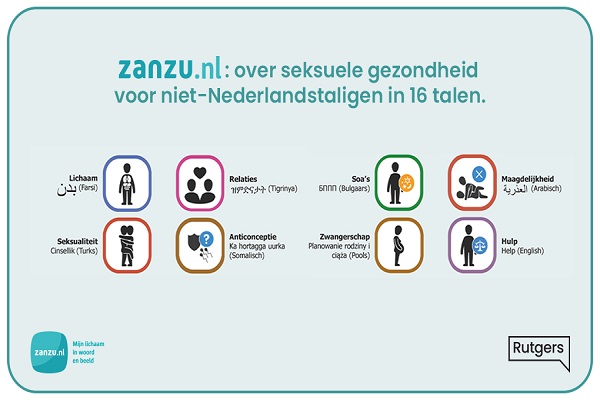 Deze website van Rutgers bevat betrouwbare informatie over seksuele gezondheid in 16 talen. Je vindt er alles over het lichaam, zwangerschap, geboorte, relaties, seksualiteit, soa’s, wet- en regelgeving en hulpverlening. Hierbij is rekening gehouden met culturele gevoeligheden.